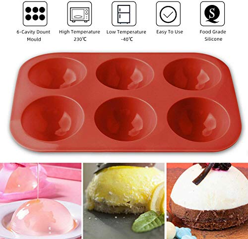 GREHOME - قالب خبز نصف كروي غير لاصق من السيليكون بـ 6 فتحات - أحمر من جريهوم