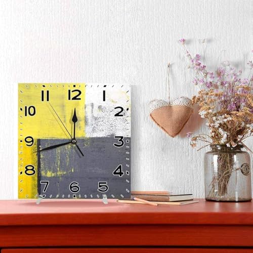 Generic - ساعة حائط عصرية بتصميم مربعات تجريدية بلون رمادي واصفر، ساعة كوارتز انالوج هادئة تعمل بالبطارية مقاس 14 انش للمنزل والمكتب والمدرسة