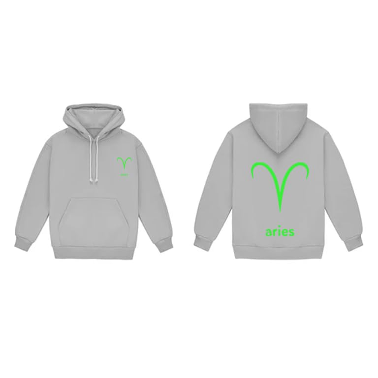 Generic - هودي قطن رمادي مع شعار برج الحمل بلون اخضر ليموني مقاس (M)