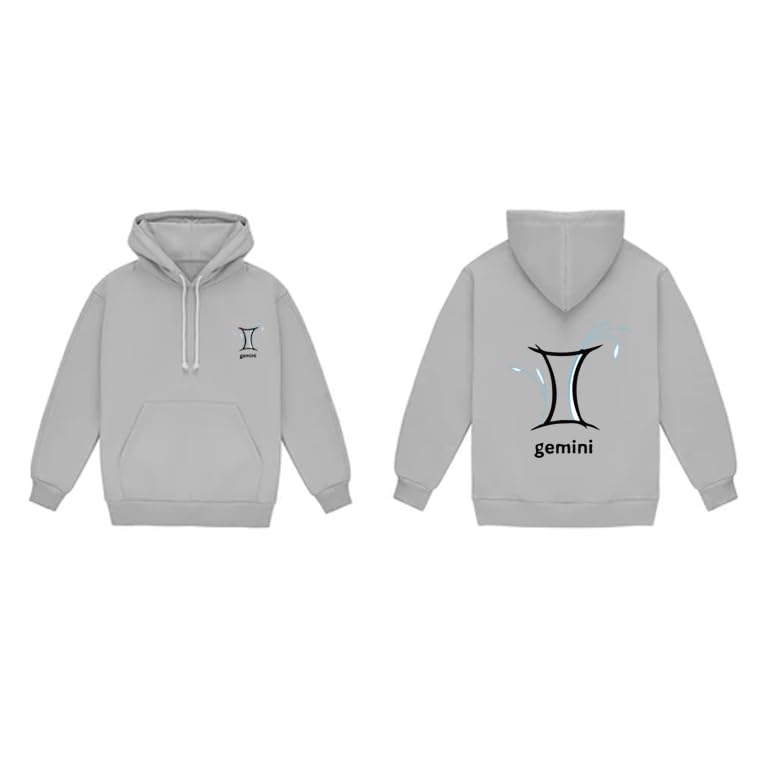 Generic - هودي قطن رمادي مع شعار برج الجوزاء الاسود مقاس (6-9 سنوات)