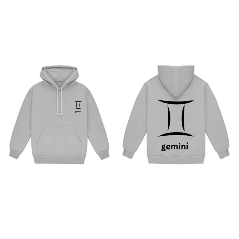 Generic - هودي قطن رمادي مع شعار برج الجوزاء الاسود مقاس (XL)