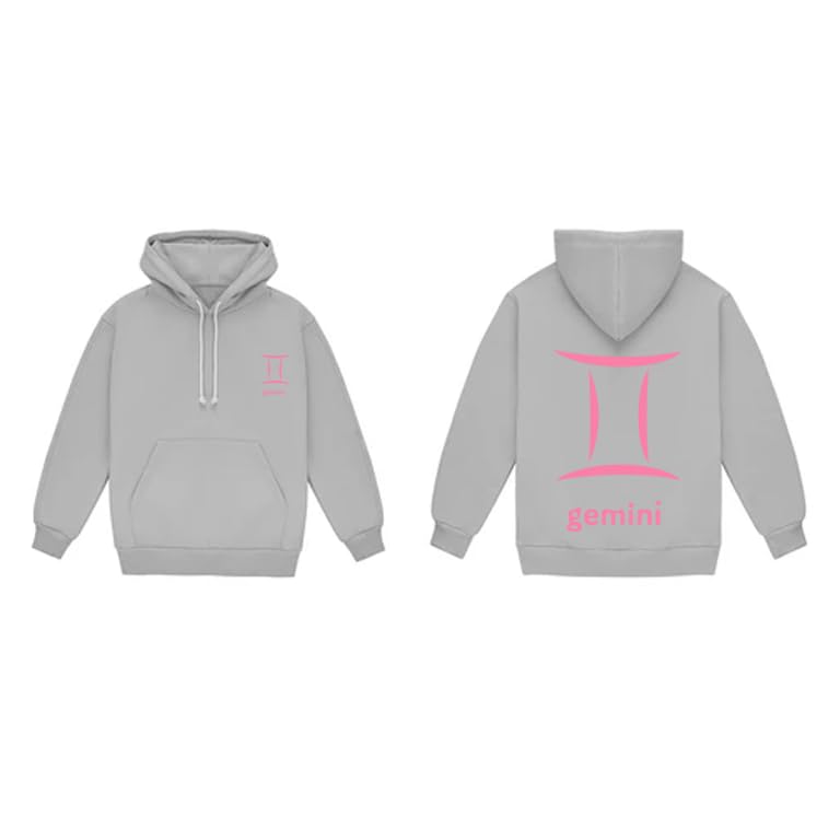 Generic - هودي قطن رمادي مع شعار برج الجوزاء الوردي مقاس (S)