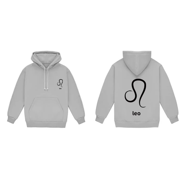 Generic - هودي قطن رمادي مع شعار ليو زودياك اسود مقاس (2XL)