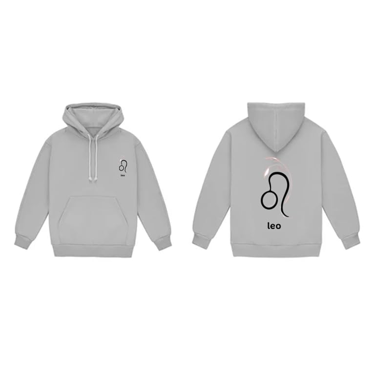 Generic - هودي قطن رمادي مع شعار ليو زودياك اسود مقاس (9-12 سنة)