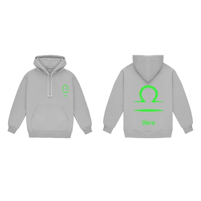 Generic - هودي قطن رمادي مع شعار ليبرا زودياك اخضر ليموني مقاس (M)