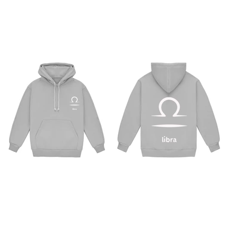 Generic - هودي قطن رمادي مع شعار برج الميزان الابيض مقاس (M)