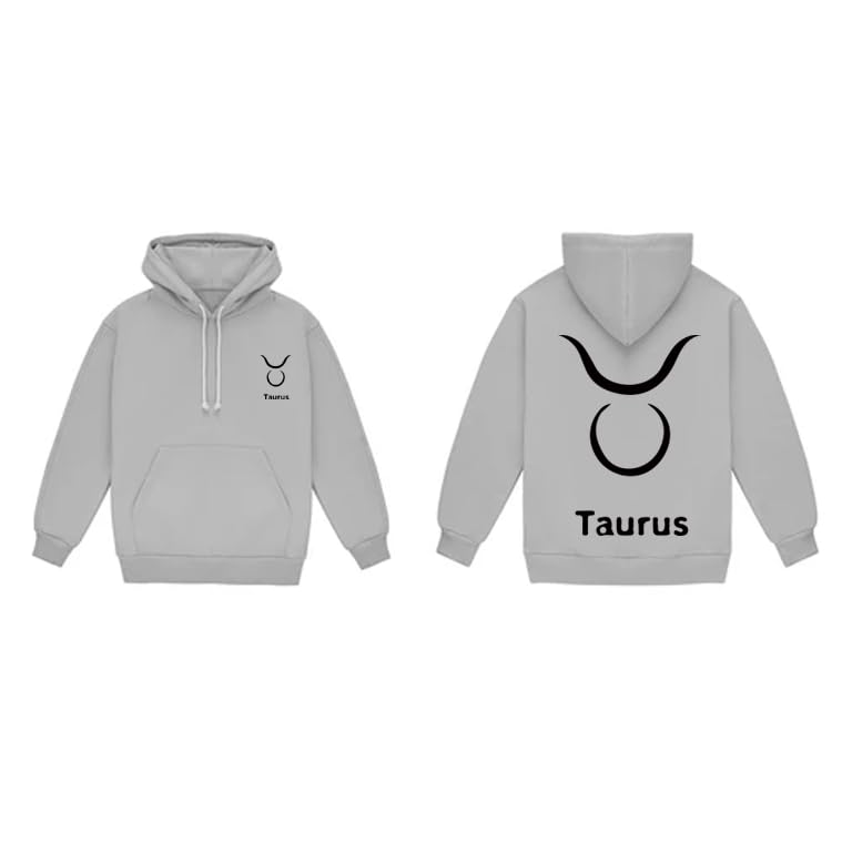 Generic - هودي قطن رمادي مع شعار برج الثور الاسود مقاس (S)