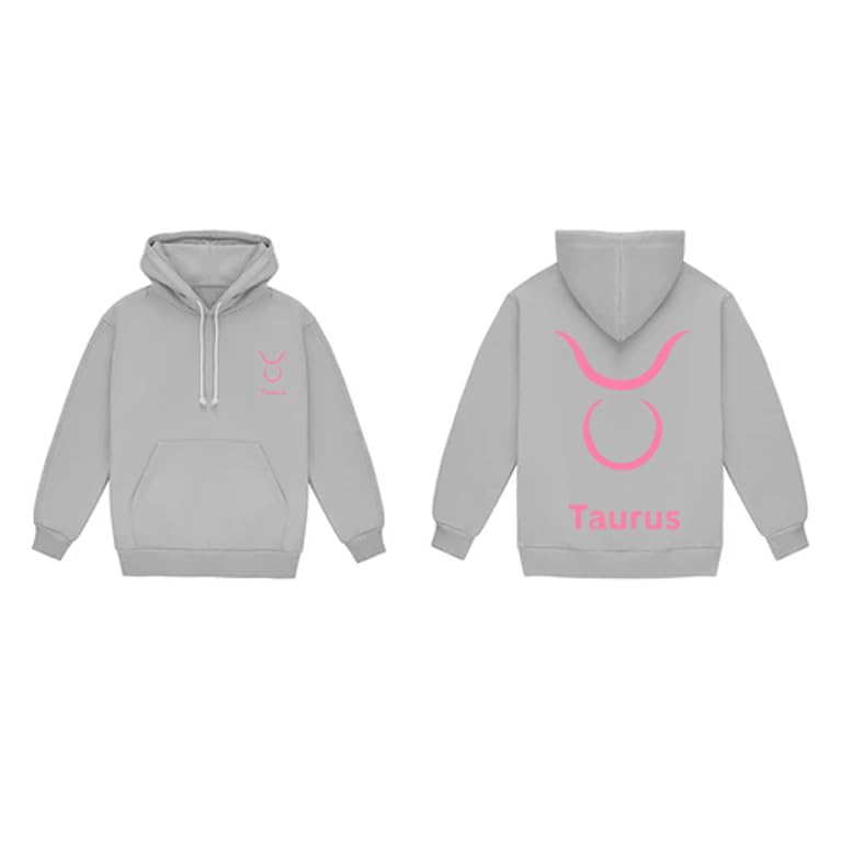 Generic - هودي قطن رمادي مع شعار برج الثور الزهري مقاس (L)