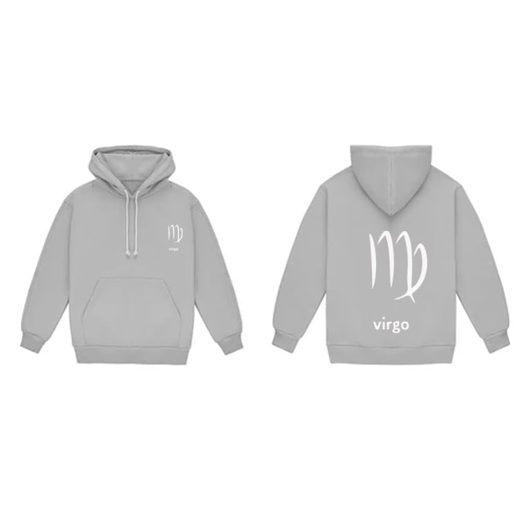Generic - هودي قطن رمادي مع شعار برج العذراء الابيض مقاس (L)