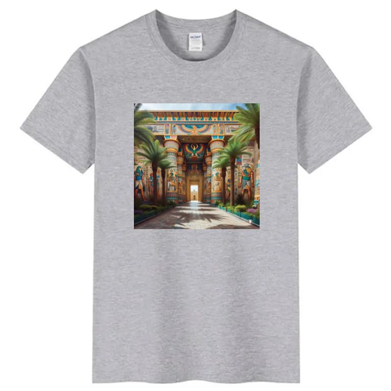 Generic - تيشرت قطن رمادي مطبوع عليه رسومات فنية معبد مصري، اهرامات، مقاس (3-6 سنوات)