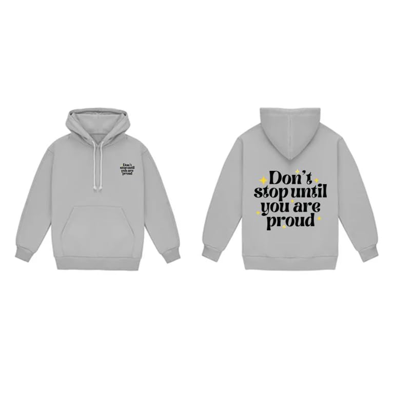 Generic - سترة بقلنسوة رمادية، Don't Stop Until You Are Proud Quote، طباعة أمامية وخلفية مقاس (XL)