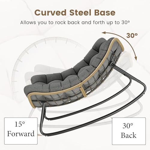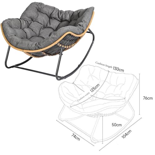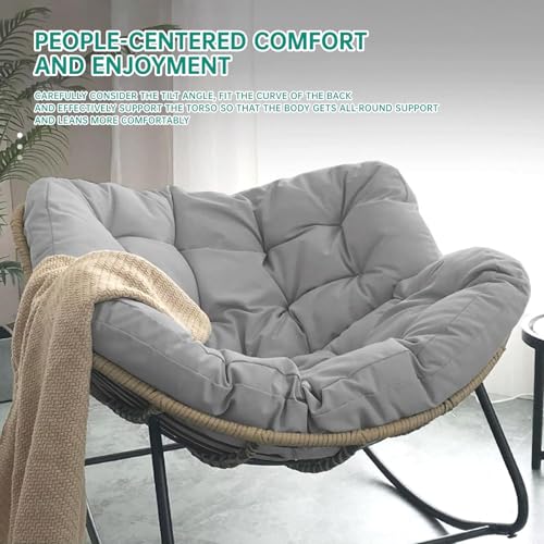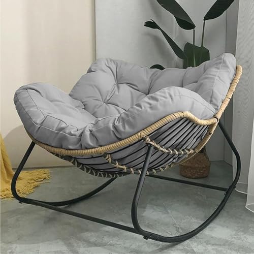 MANYUK - كرسي هزاز رمادي مع وسادة، صالة استرخاء خارجية وداخلية لغرفة النوم والفناء والشرفة والحديقة والفناء الخلفي، 74 × 104 × 76 سم