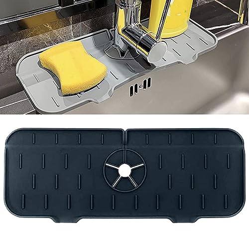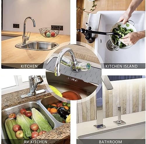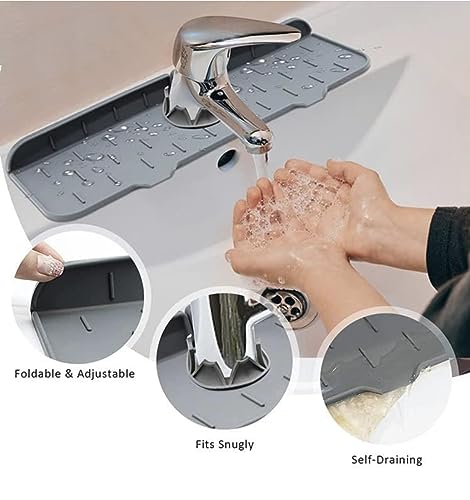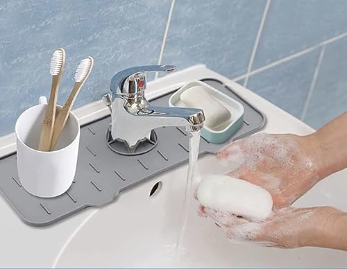 Generic - حامل صابون سيليكون لحنفية حوض الغسيل بلون رمادي، حصيرة تجفيف حوض حول الحنفية للمطبخ والحمام