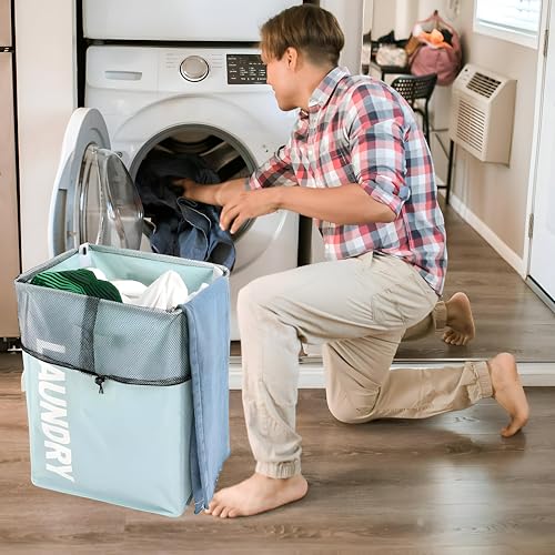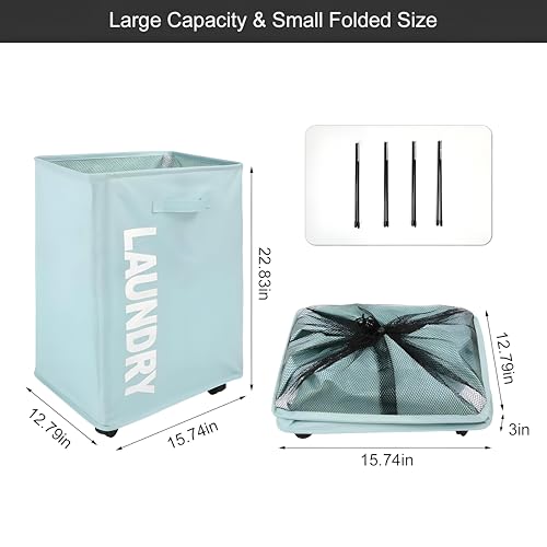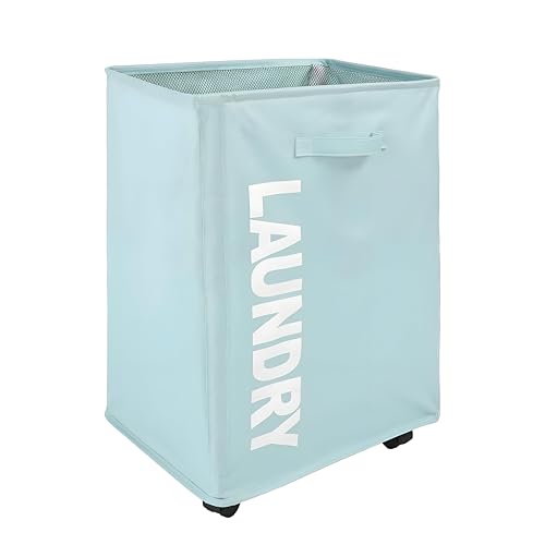 Generic - سلة تخزين رمادية - سلة غسيل قابلة للطي بعجلات مع حشوة شبكية ومقابض مريحة لتنظيم الغسيل اليومي وسهولة الحمل (ازرق)