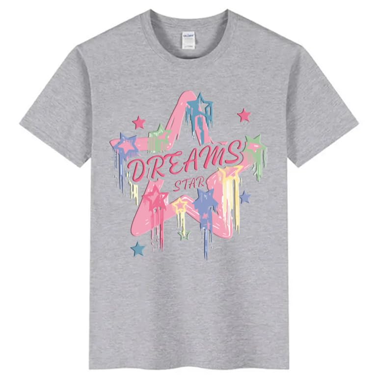Generic - تي شيرت رمادي مع رسومات دريم ستار، كم قصير مقاس (3-6 سنوات)