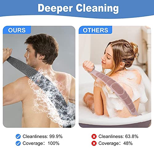 GRIDLAB - فرشاة استحمام مزدوجة الجوانب من السيليكون لتنظيف الجسم والظهر من جريدلاب لتدليك البشرة العميقة، حزام تقشير لازالة الجلد الميت للاستحمام، رغوة جيدة للرجال والنساء (حزام ظهر للجسم من السيليكون)