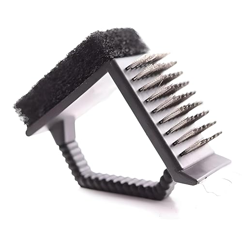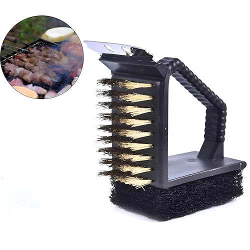 Generic - فرشاة شواء – أداة تنظيف شواء 3 في 1 متعددة الاستخدامات تتميز بشعيرات بلاستيكية مقاومة للحرارة، وكاشطة متينة، ورأس مرن لإزالة الشحوم العميقة من جميع الشوايات ومواقد الطهي