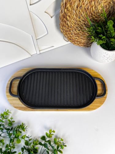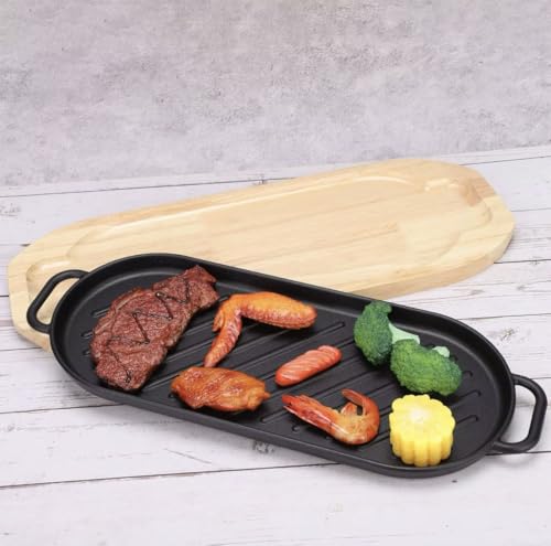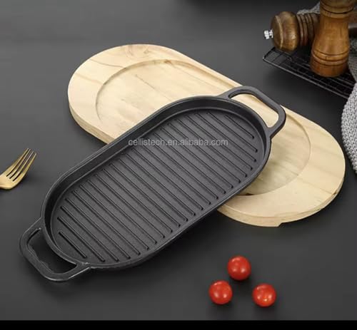 - قاعدة خشبية طبيعية للحماية والتقديم: يأتي مع الطاسة كوستر خشبي متين ومصقول بعناية، يعمل كعازل حراري ممتاز يحمي طاولات السفرة والأسطح الحساسة من حرارة الحديد المرتفعة، مما يجعله طقماً مثالياً لتقديم الوجبات الساخنة "تتش" بأسلوب المطاعم الفاخرة.