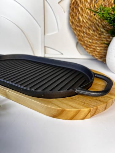 - هيكل حديد زهر فائق الكثافة والثقل: يتميز هذا الجريل بوزنه الثقيل جداً الناتج عن صبه من الحديد الخام النقي، مما يجعله قادراً على تحمل درجات الحرارة المرتفعة جداً دون انثناء، ويوفر قدرة تبريد بطيئة تحافظ على دفء الطعام لفترة طويلة بعد الطهي.