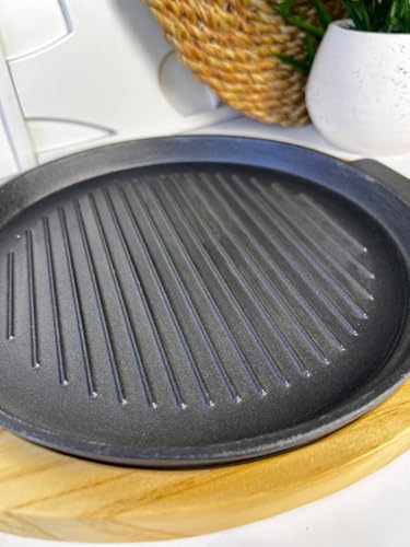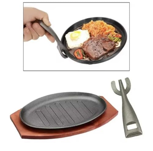 - قاعدة خشبية طبيعية للحماية والتقديم: يأتي مع الطاسة كوستر خشبي متين ومصقول بعناية، يعمل كعازل حراري ممتاز يحمي طاولات السفرة والأسطح الحساسة من حرارة الحديد المرتفعة، مما يجعله طقماً مثالياً لتقديم الوجبات الساخنة "تتش" بأسلوب المطاعم الفاخرة.