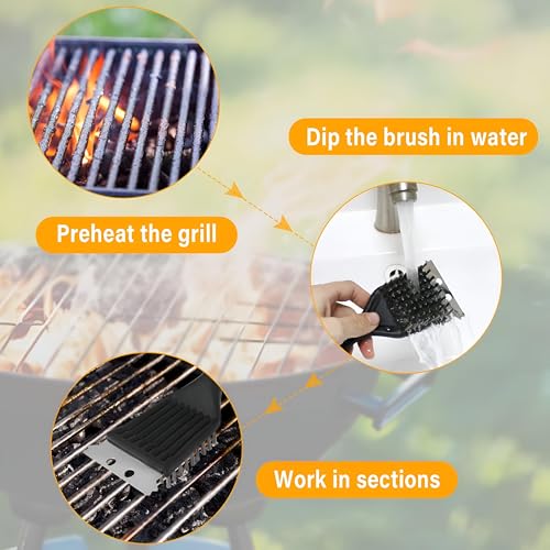 Generic - فرشاة تنظيف الشواية - اداة بشعيرات سلكية معدنية متينة للشواء وتنظيف سطح الفرن، مثالية لمهام الشواء شديدة التحمل في المطبخ او الفناء (3 قطع)
