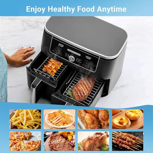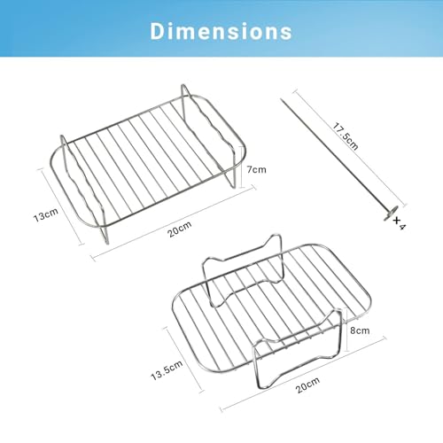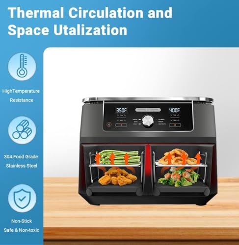 - مصمم ليناسب معظم المقالي الهوائية ذات السلة المزدوجة من 3.7 إلى 4.2 كوارت، بما في ذلك الموديلات الشائعة مثل AF300UK وAF400UK، يزيد هذا الرف من مساحة الطهي ويقلل من الحاجة إلى أجهزة إضافية.