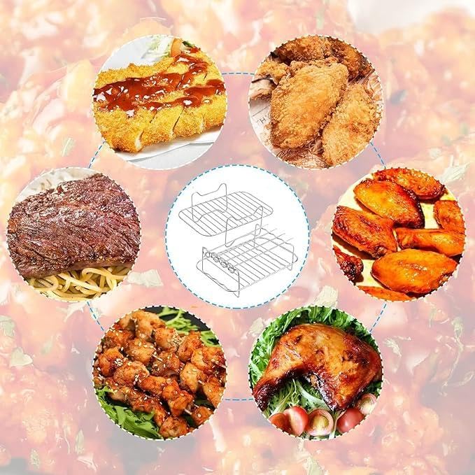 - مصنوع من الستانلس ستيل عالي الجودة، يضمن رف المقلاة الهوائية هذا متانة طويلة الأمد وأمان عالي، خالٍ من البلاستيك أو المواد الضارة، مما يجعله مثاليًا للاستخدام اليومي دون التنازل عن الصحة أو الجودة.