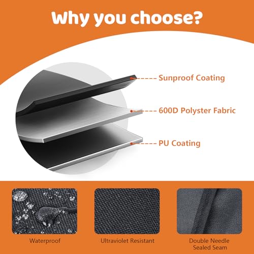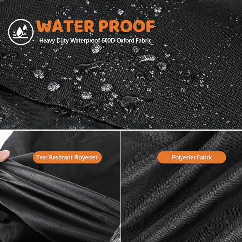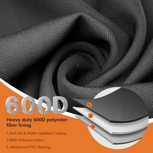 - هيكل شديد التحمل: مصنوع من قماش البوليستر 600D، تم تصميم غطاء شواية الفحم هذا لتحمل العناصر. مقاومة للماء وتوفر حماية قوية، مما يحافظ على الشواية آمنة من المطر والغبار والأضرار الأخرى المرتبطة بالطقس
