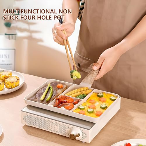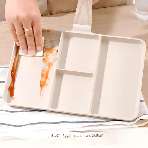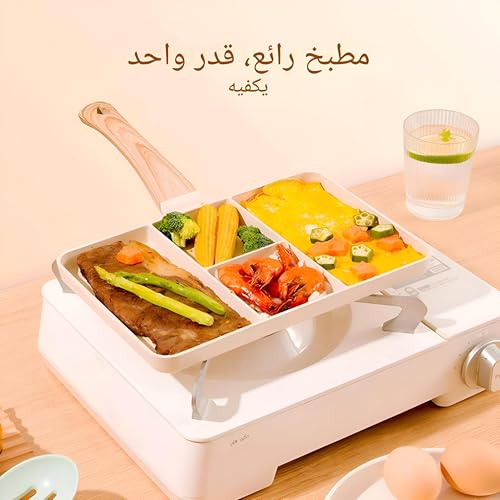 Generic - مقلاة جرانيت مقسّمة بـ4 أقسام - مقلاة متعددة الوظائف بمقبض مقاوم للحرارة، لتحضير الإفطار، والبيض، وطهي وجبات متنوعة، بتصميم محمول وموفر للمساحة