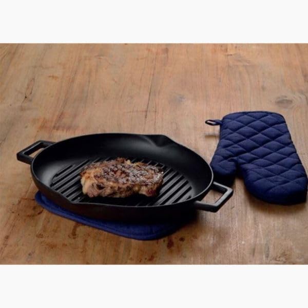 - تصميم متعدد الاستخدامات: مقلاة شواء من الحديد الزهر مقاس 30 سم مع حواف مرتفعة مثالية للشواء الداخلي والحرق وخلق علامات شواء جذابة على اللحوم والأسماك والخضروات