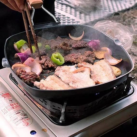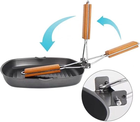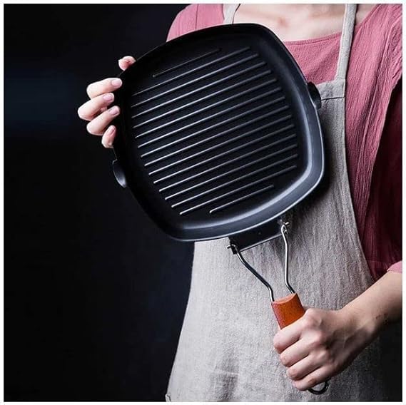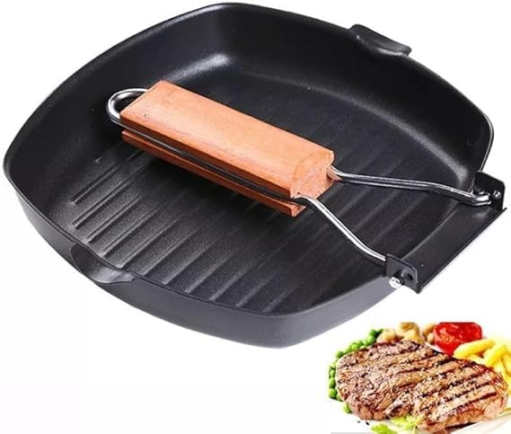Generic - طاسة شواء كبيرة جريل مقاس 28 سم مقاومة للالتصاق بمقبض قابل للطي مثالية لشرائح اللحم والخبز والطهي المنزلي أو التخييم للاستخدامات المتعددة