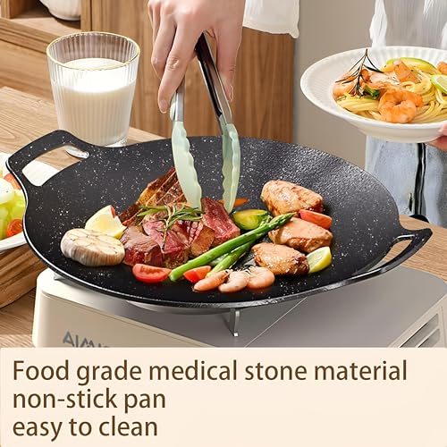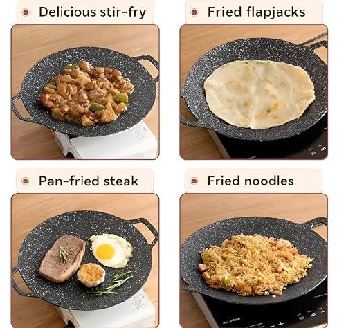 Generic - طاسة شواء، أواني طهي مقاومة للالتصاق بسطح مقاوم للحرارة، مثالية لحفلات الشواء والتخييم في الهواء الطلق والشوي على الموقد والتسخين الحثي، متعددة الاستخدامات ومناسبة للاستخدام الداخلي والسفر (مقاس 28 سم