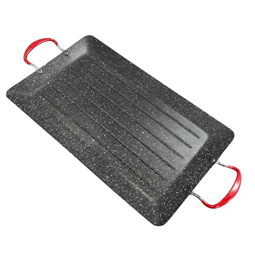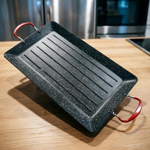 - Experience superior thermal performance with this lightweight aluminum grill pan, designed for rapid and even heat distribution across its generous 42x27cm surface. The high-quality construction eliminates cold spots, ensuring consistent cooking results whether searing steaks, grilling fish, or roasting colorful vegetables. Its efficient heat retention locks in natural juices, delivering tender, flavorful meals every time while replacing heavy cast iron alternatives with effortless maneuverabili