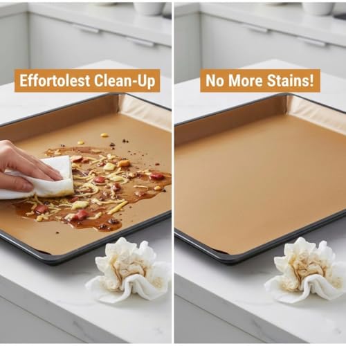 - ✅【مانعة الالتصاق بالكامل】توفر حصيرة الطهي سطحًا غير لاصق تمامًا يسمح بطهي جميع أنواع الأطعمة دون الحاجة لاستخدام الزيوت أو الدهون، مما يسهل قلب الطعام وإزالته بسهولة بعد الطهي، كما يجعل تنظيف الطاسات والمقالي سريعًا وبسيطًا، لتتمكن من إعداد وجبات متنوعة بطريقة عملية وسلسة كل يوم. 🍳