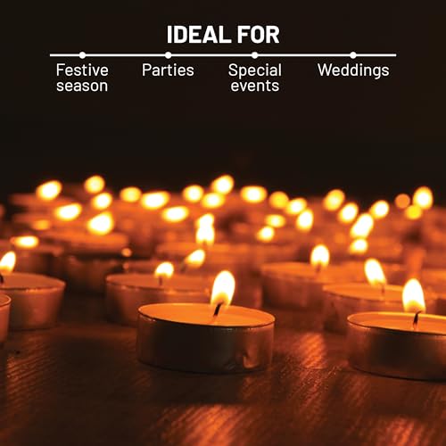 GROB - شموع تي لايت احتفالية غير معطرة من جروب كرنفال | شموع زينة ديوالي بدون دخان | وقت احتراق 4 ساعات | شمعة شمع صغيرة | 8 جرام، 100 قطعة