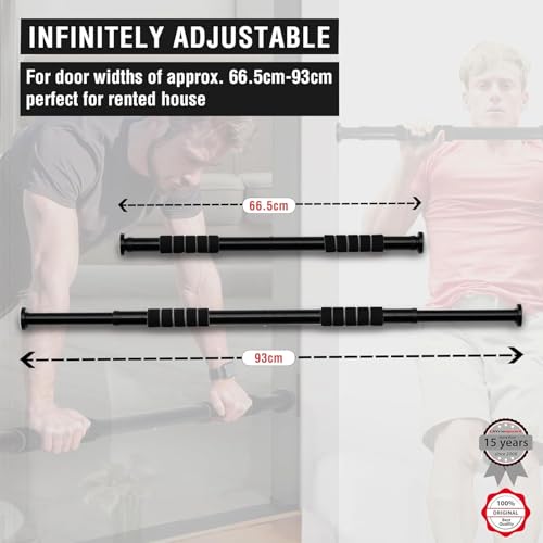 Grofilo - قضيب سحب للتثبيت في المدخل بسعة وزن 150 كجم، قضيب تمارين رفع للتثبيت بدون مسامير بتصميم قابل للتعديل مزود بآلية قفل من جروفيلو، 62 سم - 1 متر