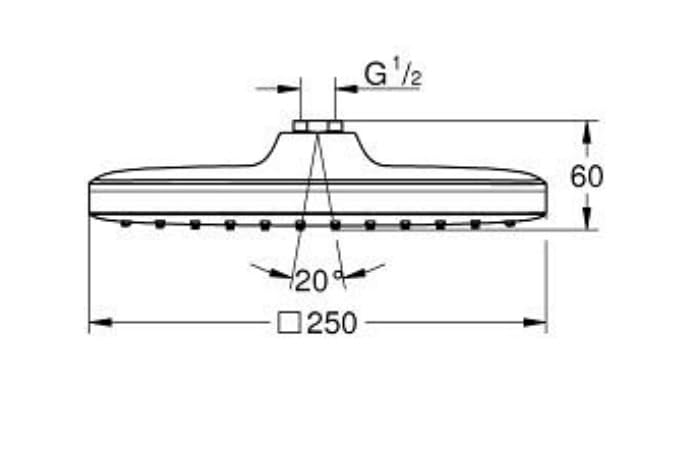 GROHE - رأس دش مربع تيمبيستا من جروهي، مقاس 25 سم، لون فضي، موديل 26681000