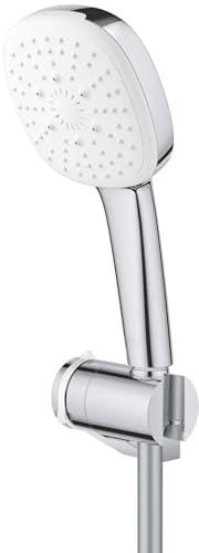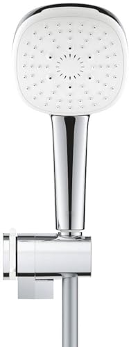 GROHE - مجموعة قضبان دش تثبت بالحائط تيمبيستا كيوب 110 بـ 3 رشاشات (بنمط مطر، نفاث، تدليك) مطلي بالكروم من جروهي، 27584003