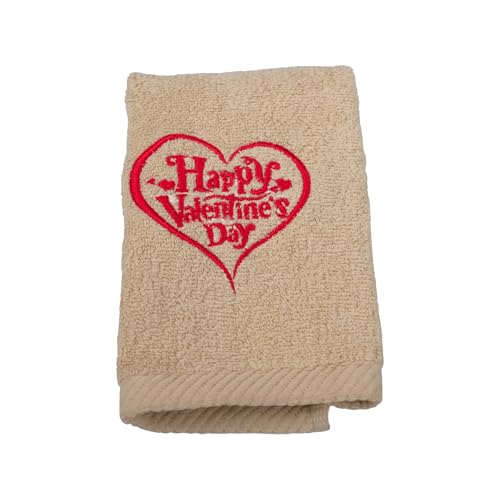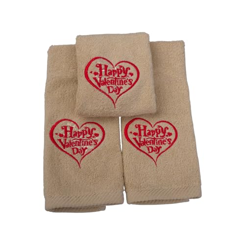 GG Bed and Bath - طقم فوط مطرزة بتصميم عيد الحب، 3 قطع، وزن 72 جم، مقاس 33×33 سم، بيج