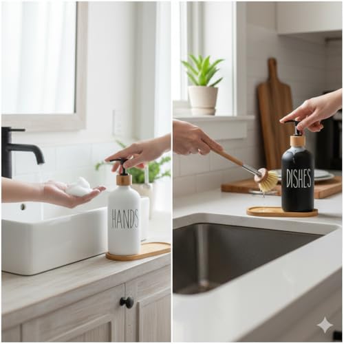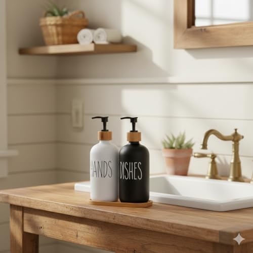 - موزع زجاجي مزدوج الحجرة للصابون السائل أو اللوشن بتصميم عصري.