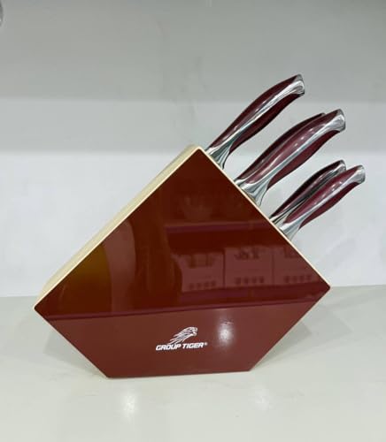 Generic - طقم سكاكين جروب تايجر، ٦ قطع مع حامل خشبي، شفرات ستانلس ستيل، لون نبيتي