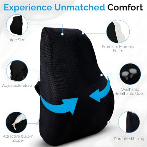 - رغوة الذاكرة الفاخرة: وسادة دعم الظهر الخاصة بنا، مصنوعة من رغوة الذاكرة الممتازة، توفر دعمًا وراحة فائقة للأسفل الظهر. مثالي كمسند ظهر للسيارة أو دعم ظهر الكرسي، فهو يخفف الضغط ويعزز محاذاة العمود الفقري المناسبة. يتضمن ضمان استبدال لمدة عامين لمزيد من راحة البال.