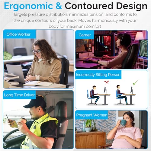 - حماية من آلام الظهر: مسند الظهر للكراسي من جروف مصنوع من رغوة الذاكرة عالية الجودة، مما يوفر دعمًا وراحة استثنائيين. استخدمه كمسند ظهر للسيارة أو دعم ظهر الكرسي لتخفيف آلام الظهر وتعزيز الرفاهية العامة.