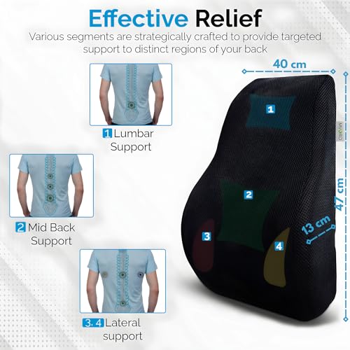 GROVM - دعامة ظهر للكرسي من جروفم | دعم ظهر الكرسي ووسادة دعم ظهر مقعد السيارة لتخفيف الام الظهر | وسادة مقعد السيارة | دعم قطني ومسند ظهر للكرسي | دعم مسند ظهر السيارة | ميموري فوم XL