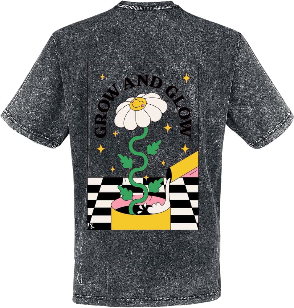 Generic - تي شيرت مطبوع عليه Grow and Glow بظهر مغسول