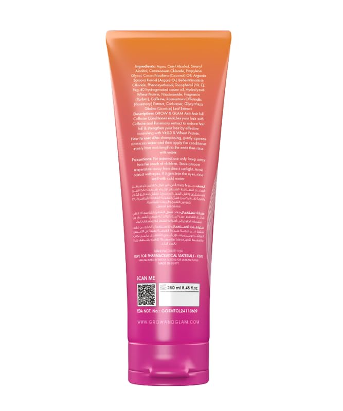 GROW & GLAM - بلسم كافيين مضاد لتساقط الشعر من جرو اند جلام، 250 مل