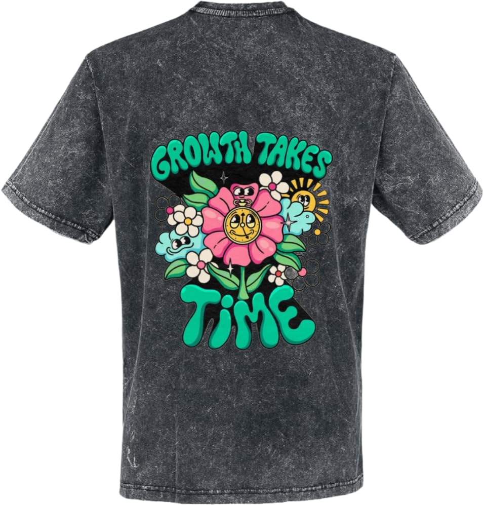 Generic - تيشرت مطبوع بعبارة «GROWTH TAKES TIME» مغسول