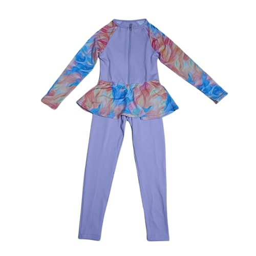 Generic - GSC001 - بدلة سباحة بيبلوم مطبوعة بالزهور للبنات باكمام طويلة من قطعة واحدة، ارجواني فاتح وازرق، حماية من الاشعة فوق البنفسجية