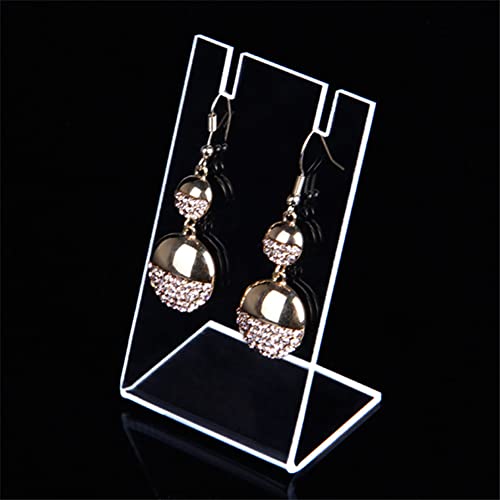 GSHLLO - حامل عرض مجوهرات اكريليك شفاف من 4 قطع، زوج من حوامل حلقان، رفوف عرض سلاسل بتصميم حرف L، منظم حلقان بريمة صغير