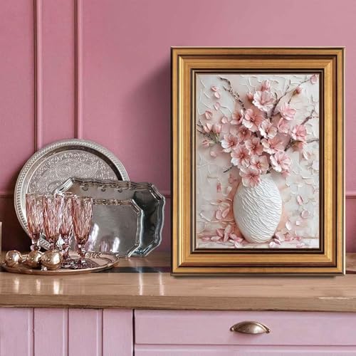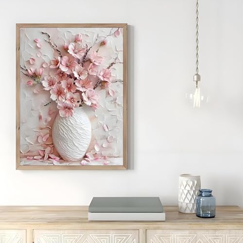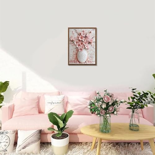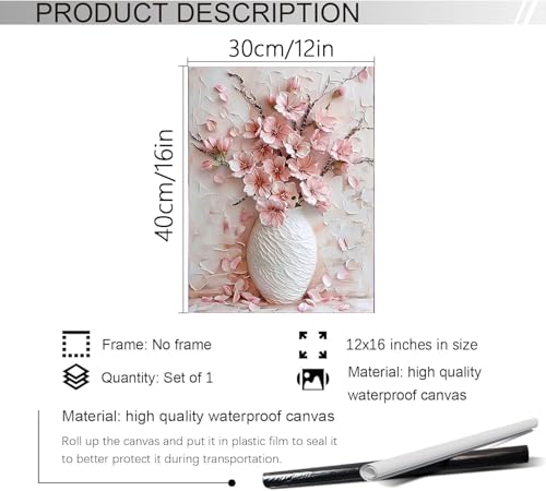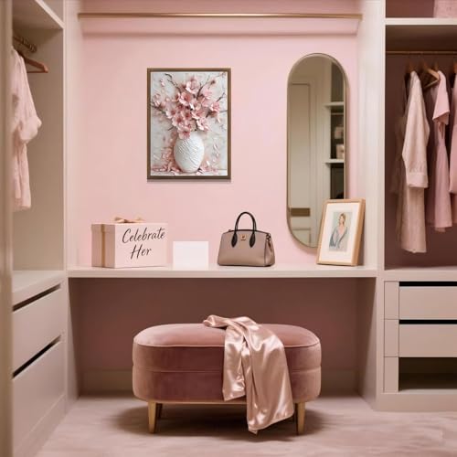 GSJMWD - لوحة جدارية من GSJMWD، طباعة فنية لغرفة النوم بتصميم زهور وزجاجات باللون الوردي، مقاس 30.48 × 40.64 سم